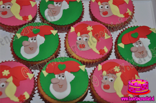 Dit kan met alleen fondant of met een toef botercrème erbij.